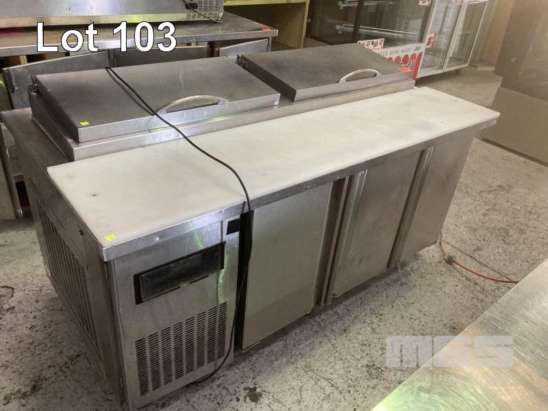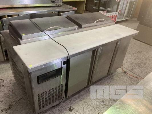 PREP FRIDGE, 3 DOOR, 180cm, STAINLESS STEEL CASED, 240V, (ALL FAULTS, NOT COOLING)