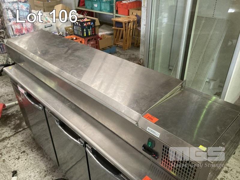 COUNTER TOP PREP FRIDGE, BORRELLI MOD: CKS-VRX2000 200cm, STAINLESS STEEL CASED, 240V ( ALL FAULTS, NOT COOLING )