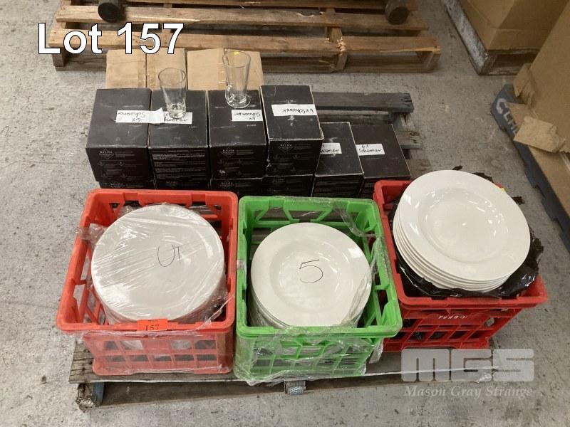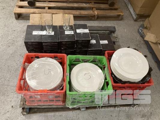DINNER PLATES, GLASSWARE, ETC