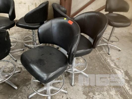 8 x SWIVEL POKIE/BAR STOOLS, BLACK VINYL, (SOME WORN)