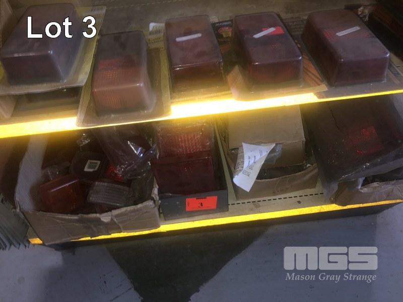 TRUCK & TRAILER TAIL LIGHTS & PARTS, APPROX 30 LIGHTS CONTENTS 3 x SHELVES