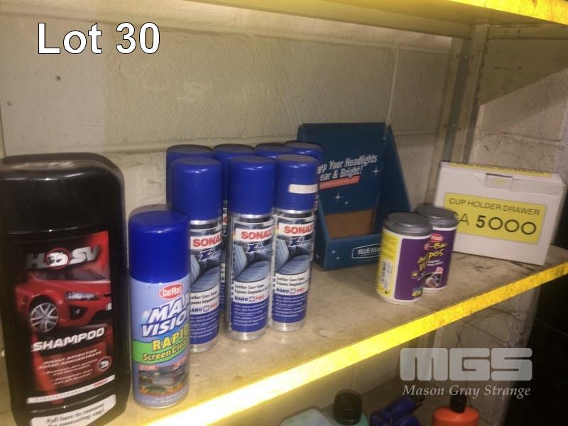 CLEANERS & POLISHES, PROTECTANTS & WIPES, CONTENTS 3 x SHELVES