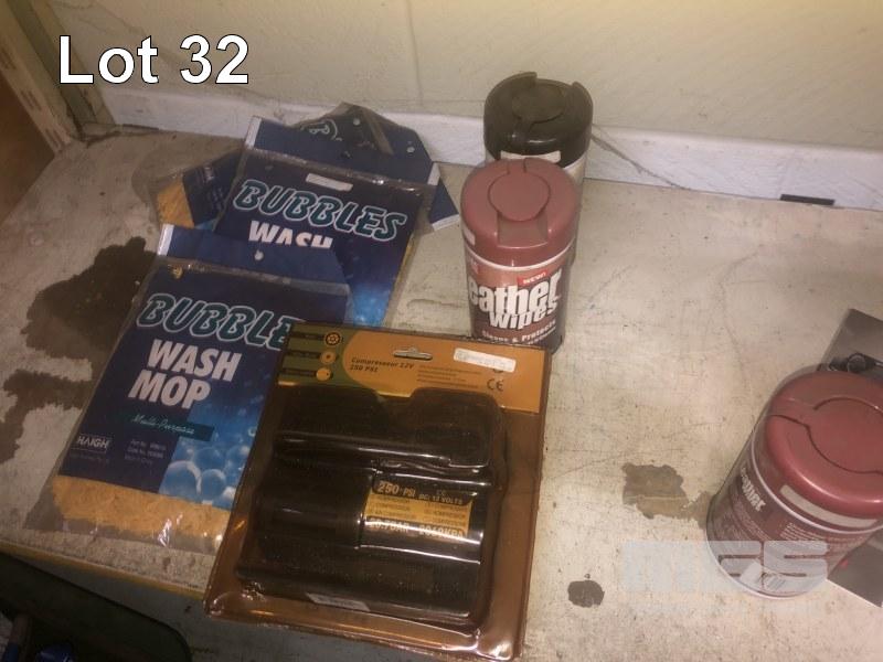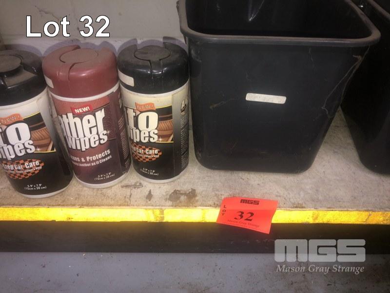 WASH BRUSHES, OIL DRAIN TRAYS, WASH BUCKETS, WIPES, LEATHER WIPES, CONTENTS 3 x SHELVES