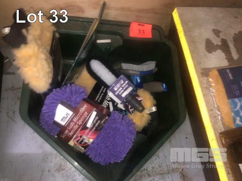 LARGE OIL DRAIN TRAY, WASH BRUSHES & MOPS
