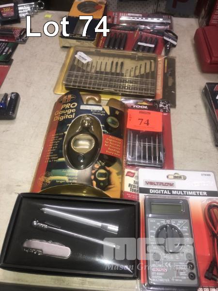 3 x DRIVE BIT SETS, PRECISION SCREWDRIVERS, AIR GAUGE, KNIFE/TORCH KIT & MULTIMETER, ALL NEW
