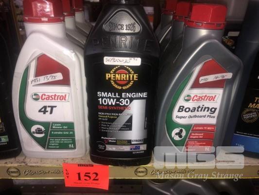 3 x BOTTLES CASTROL 1 LITRE OUTBOARD, 3 x 1 LITRE BOTTLES PENRITE 10W-30 SMALL ENGINE & 3 x 1 LITRE BOTTLES CASTROL 4T LAWNMOWER OILS