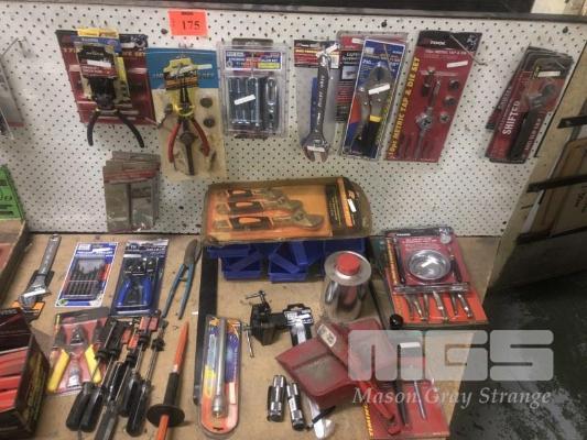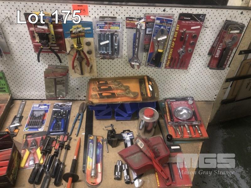 CIRCLIP PLIERS, SHIFERS, SCREWDRIVERS, TAP & DIE SET, VICE GRIPS & RIVET GUNS, CONTENTS PEG BOARD