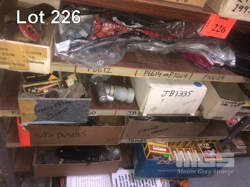 ASSORTED MOUNTS, MASTER CYLINDER, KYM UNI JOINTS, BRAKE HOSES, ETC 5 x SHELVES