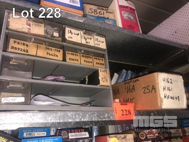 2 x DRAWER UNITS, BRAKE PARTS, CAP, CUPS, SEALS, ETC, 1 x SHELF