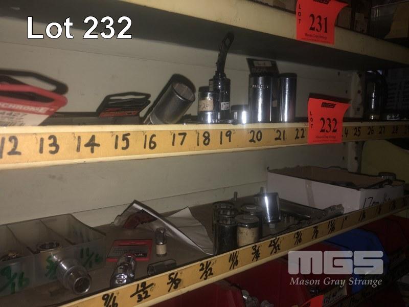 ASSORTED METRIC & IMPERIAL SOCKETS INC 3/8, 1/2" LONG SERIES, ETC 2 x SHELVES