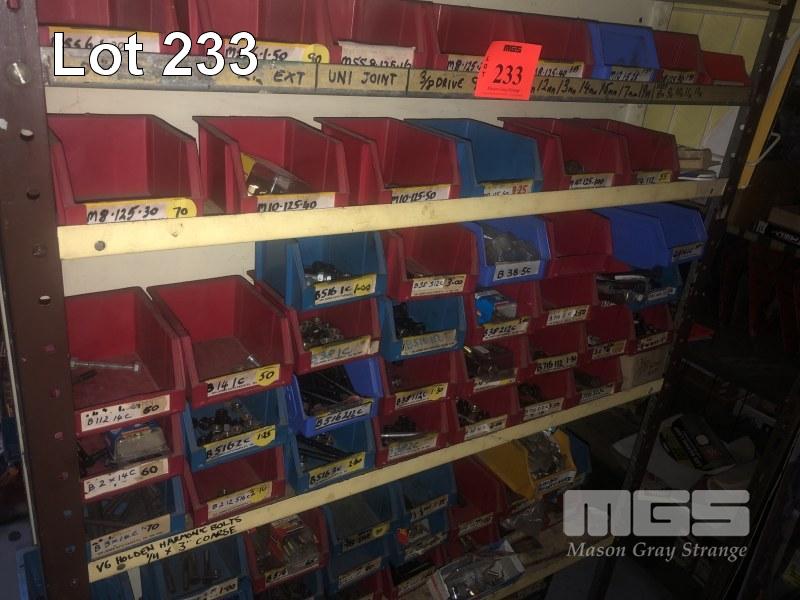 GO PARTS, BOXES ASSORTED AUTOMOTIVE FASTENERS, METRIC & IMPERIAL 4 x SHELVES