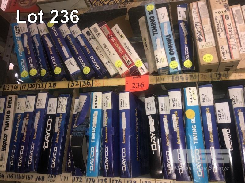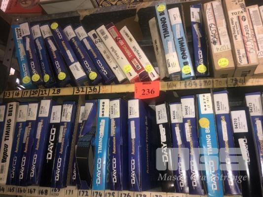 40 + (APPROX) x TIMING BELTS, DAYCO, ETC, 2 x SHELVES