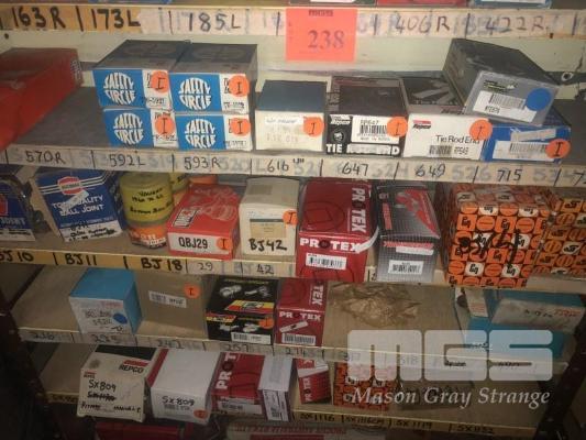 SUSPENSION PARTS, TI ROD ENDS, BALL JOINTS, PITMAN ARMS, ETC 5 x SHELVES