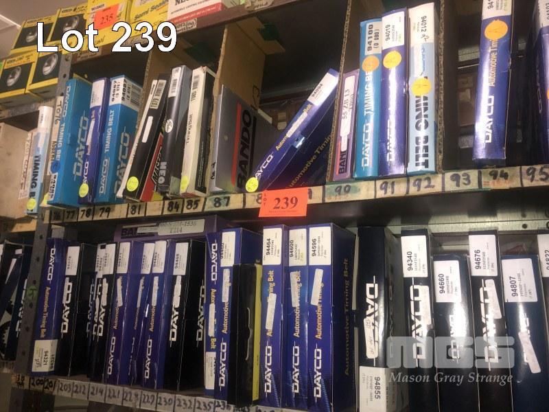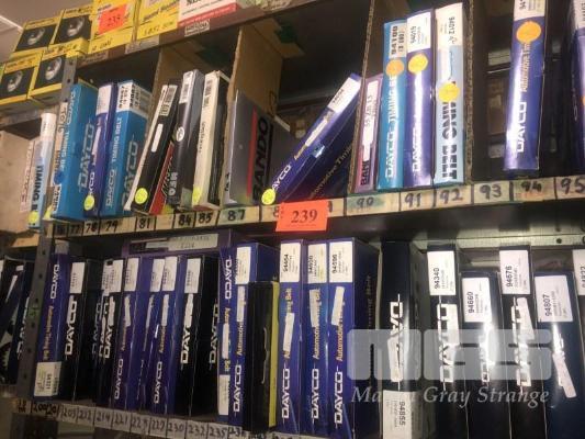 36 + (APPROX) x ASSORTED TIMING BELTS, DAYCO 2 x SHELVES