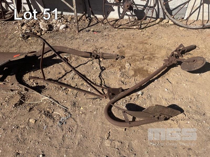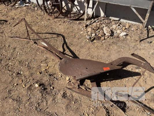 PAIR DRAWN PLOUGHS, (GARDEN ART)