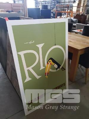 LARGE POSTER "RIO BRANIFF INTERNATIONAL AIRWAYS" ON BACKING BOARD. * SUITABLE FOR FRAMING *
