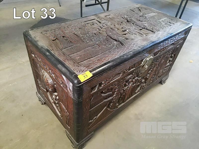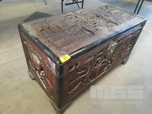 LARGE HAND CARVED CHINESE CAMPHOR CHEST. 52 x 104 x 60(H) CM.