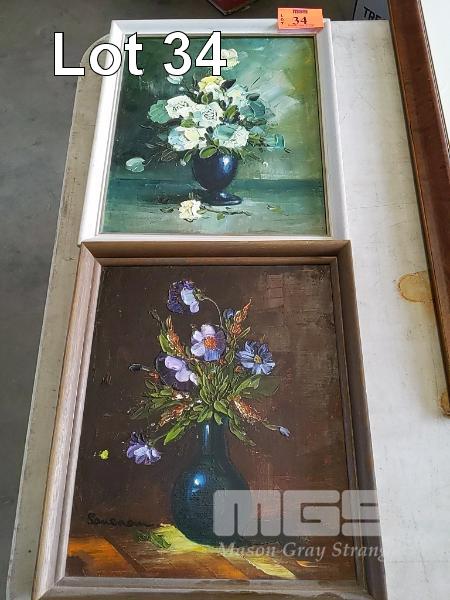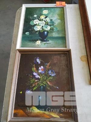 2 x FRAMED ORIGINAL OIL PAINTINGS - FLOWERS IN VASE
