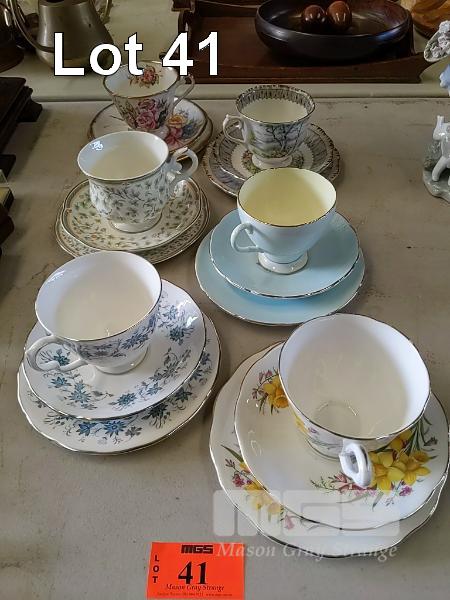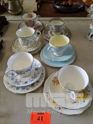 6 x BONE CHINA TEA CUP, SAUCER AND PLATE SETS.