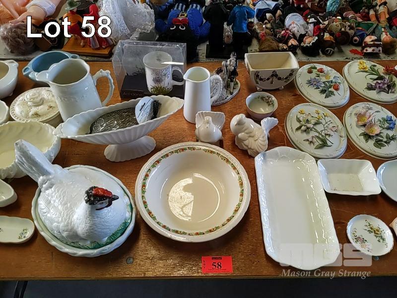 ASSORTED PORCELAIN VASES, JUGS, BOWLS, WALL HANGINGS, PLATTERS, DISHES ETC (1 x TABLE).