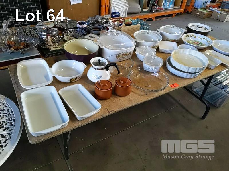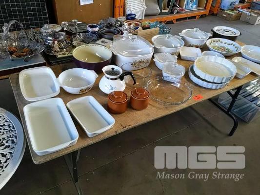 ASSORTED CONTEMPORARY AND VINTAGE COOKWARE INCLUDING CORNING WARE, PILLIVUYT, PYREX AND MORE (1 x TABLE).