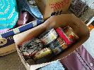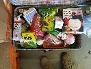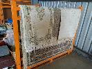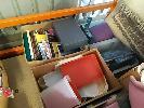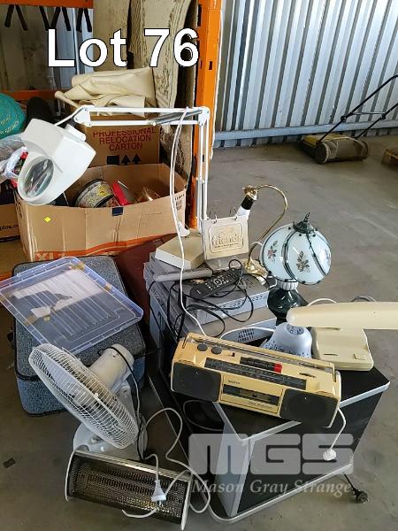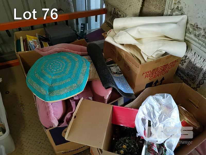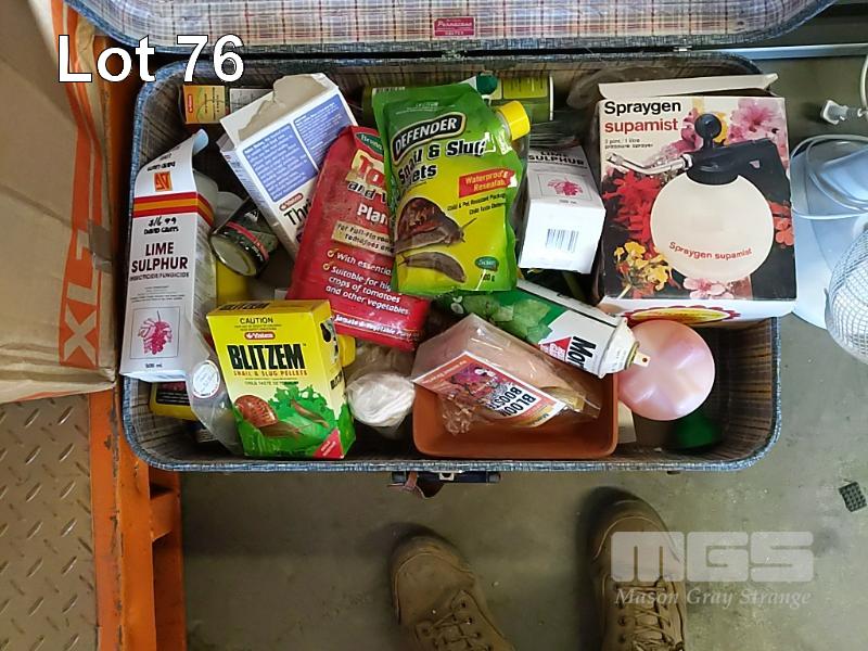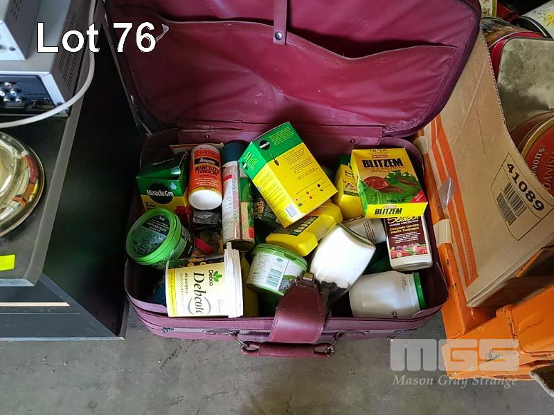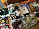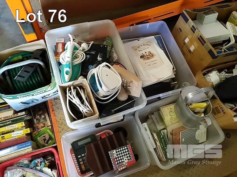 BAY LOT OFF HOUSEHOLD GOODS AND COLLECTABLES INCLUDING APPLIANCES, WRITING PAPER AND STATIONERY, LP RECORDS AND CDS, BOOKS, CRAFTING SUPPLIES, LINEN, FLOOR RUGS, THROW CUSHIONS, COLLECTABLE TINS, VINTAGE SUITCASES, LAMPS, GARDEN HOSE REEL, QUANTITY OF GARDEN CHEMICALS AND MUCH MORE (1 x STILLAGE AND FLOOR IN FRONT OF STILLAGE).
