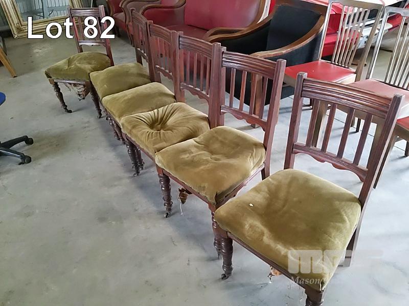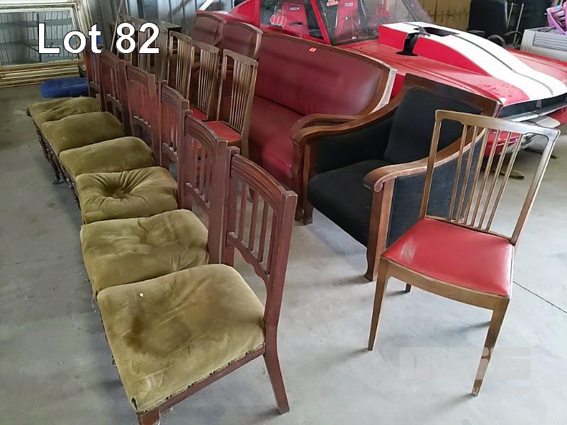 BAY LOT OF VINTAGE & MID-CENTURY CHAIRS INCLUDING SET OF ART-DECO WALNUT BENT-ARM CLUB CHAIRS COMPRISING 3 x ARM CHAIRS AND 3-SEATER SOFA, 7 x SWEDISH STYLE MID-CENTURY DINING CHAIRS AND 6 x EDWARDIAN DINING CHAIRS ETC.