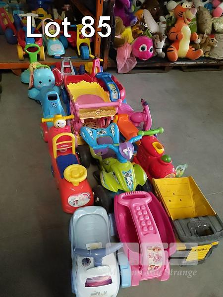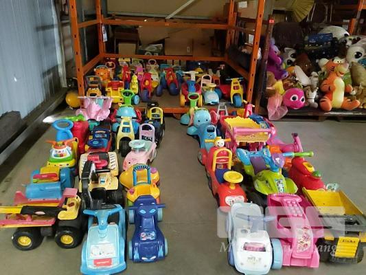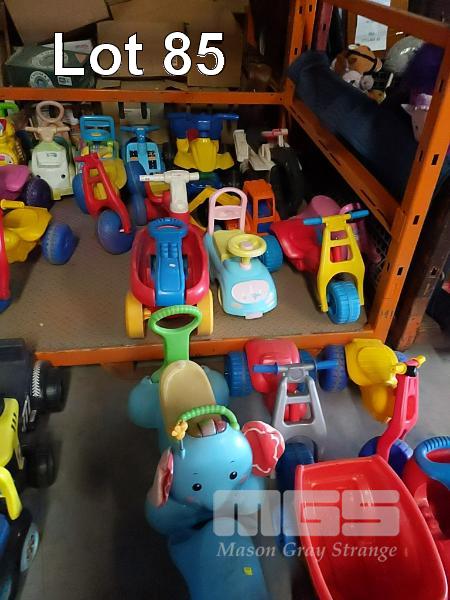 BAY LOT CONSISTING OF A HUGE COLLECTION OF ASSORTED SMALL CHILDREN'S RIDE ON TOYS (1 x STILLAGE AND SECTION OF FLOOR IN FRONT THEREOF)
