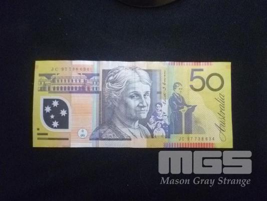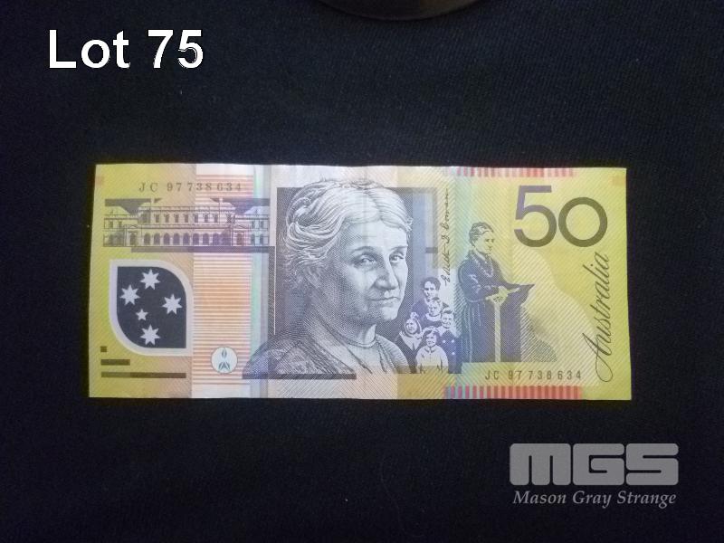 1997, AUSTRALIA, LAST PREFIX, $50 POLYMER BANKNOTE, MACFARLANE/EVANS, JC 97738634