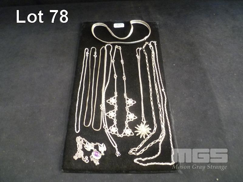 SILVER NECKLACES, MARKED 925, STG, ETC