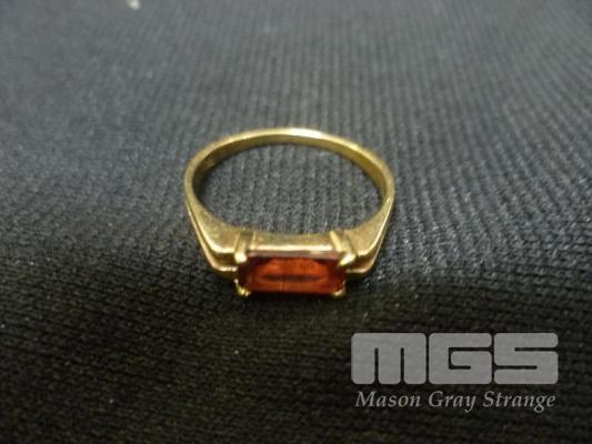 GOLD RING SET WITH RED/ORANGE STONE, MARKED 9CT, 1.81 grams