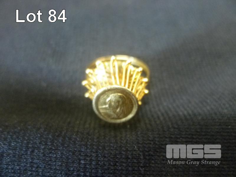 GOLD RING, WITH EMBOSSED MOTHER MARY IMAGE, MARKED 705, 2.17 grams
