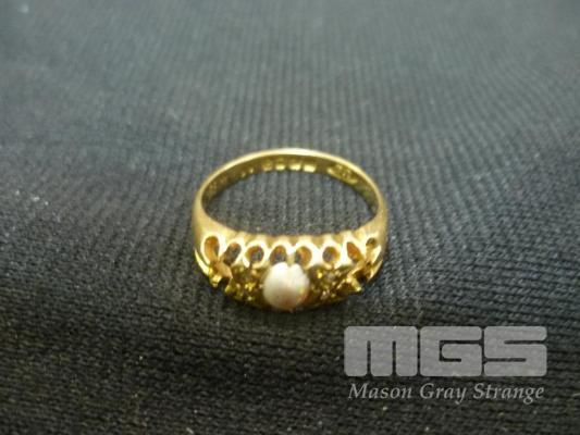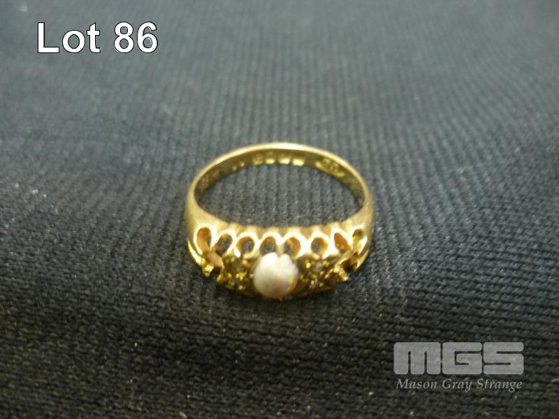 GOLD RING, SET WITH SOLID OPAL (CHIPPED) & SMALL CLEAR STONES, HALLMARKED 18 CT, 2.92 grams