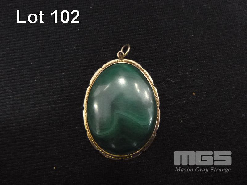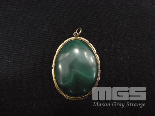 GOLD & MALACHITE PENDANT, MARKED 9c, 14.67 grams