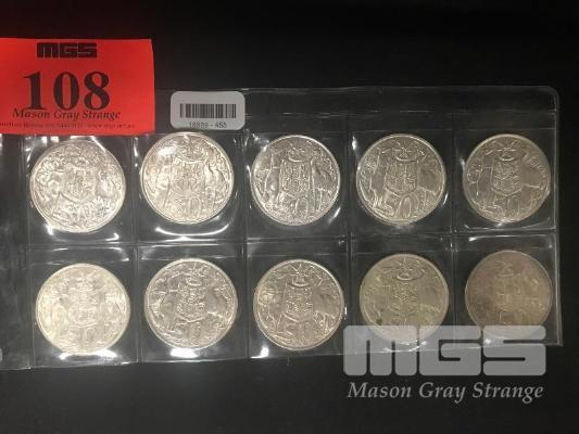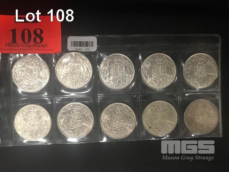 10 X 1966 AUSTRALIAN ROUND 50 CENT PIECES INC 7 X EF OR UNC CONDITION