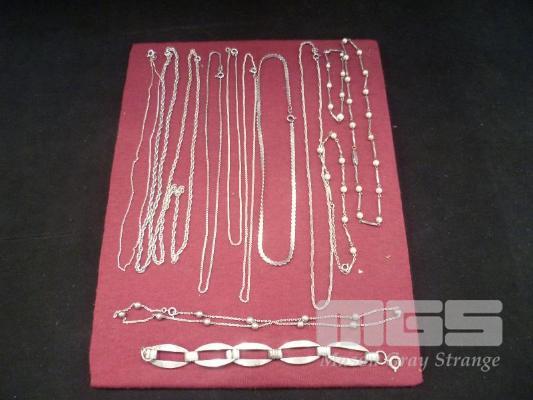 SILVER NECKLACES & BRACELETS MARKED 925, 835, ETC