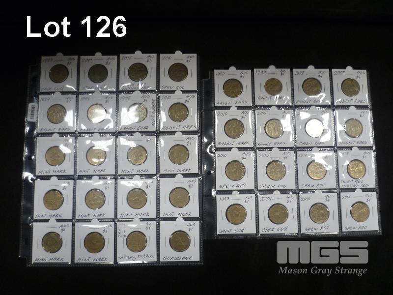 36 X AUSTRALIA, $1 ERROR COINS, INC; WAVE CUD, RABBIT EARS, SPEW ROO, ETC