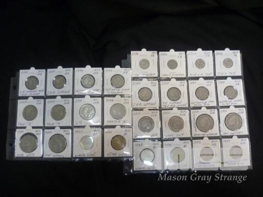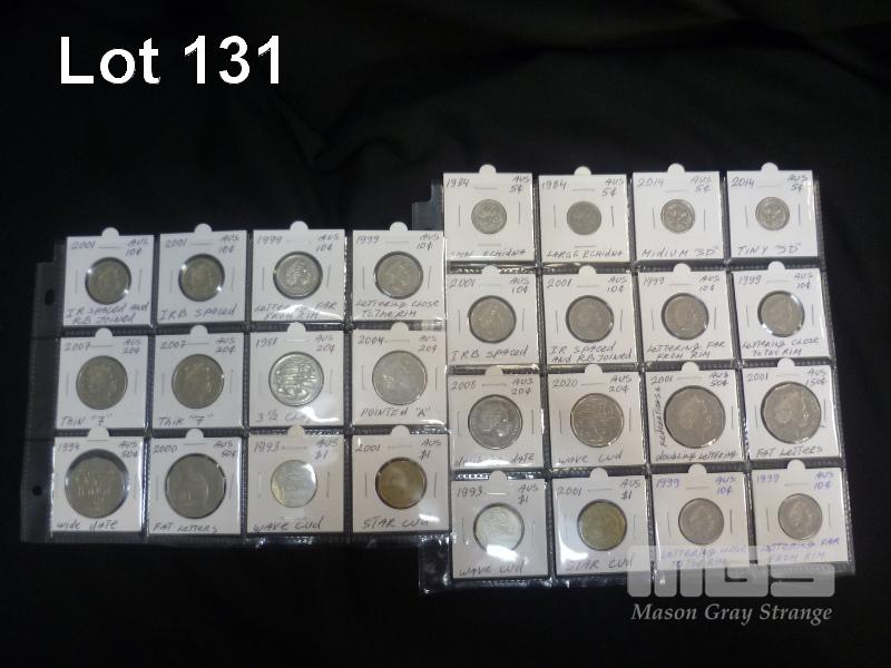 28 X AUSTRALIA, ERROR COINS, 5c, 10c, 20c, 50c, $1, INC; SMALL ECHIDNA, IRB SPACED, DOUBLE LETTERING, STAR CUD, ETC