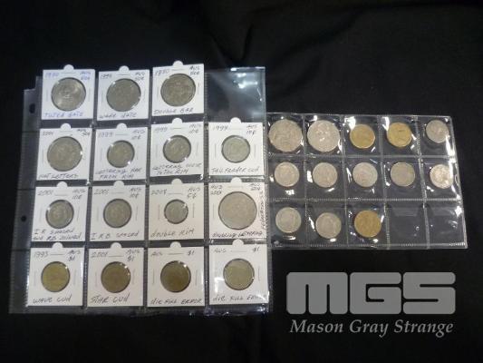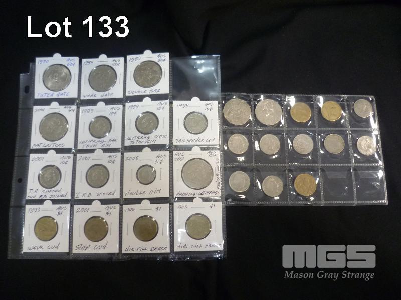28 X AUSTRALIA, MISS STRUCK & ERROR COINS, 5c, 10c, 50c, INC; DOUBLE RIM, IRB SPACED, FAT LETTERS, WAVE CUD, ETC