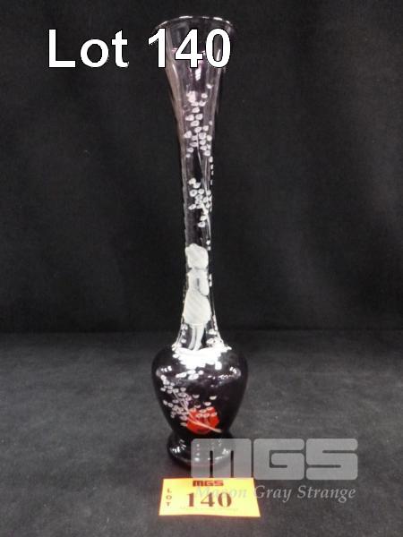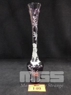 PURPLE MARY GREGORY GLASS VASE, GIRL WITH ARMS BEHIND BACK, 28cm (H)