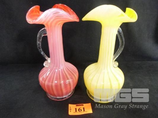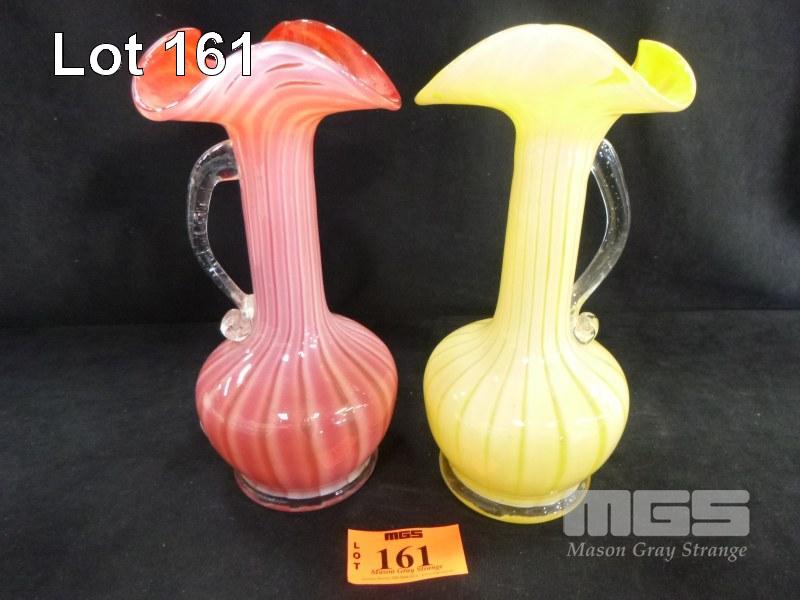RED & YELLOW ART GLASS PITCHERS, 24cm (H)
