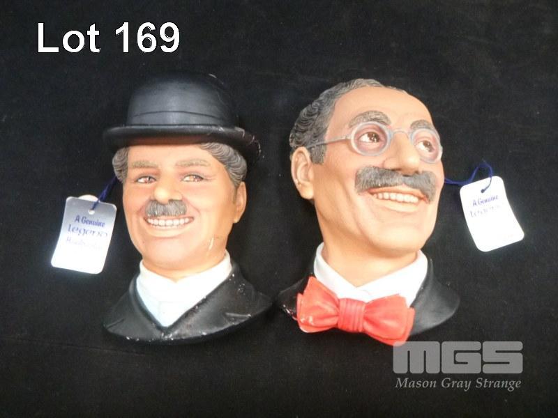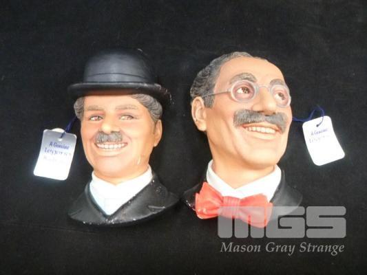 2 x LEGENDS PRODUCTS CHALKWARE HEADS, GROUCHO MARX & CHARLES CHAPLIN, MADE IN ENGLAND