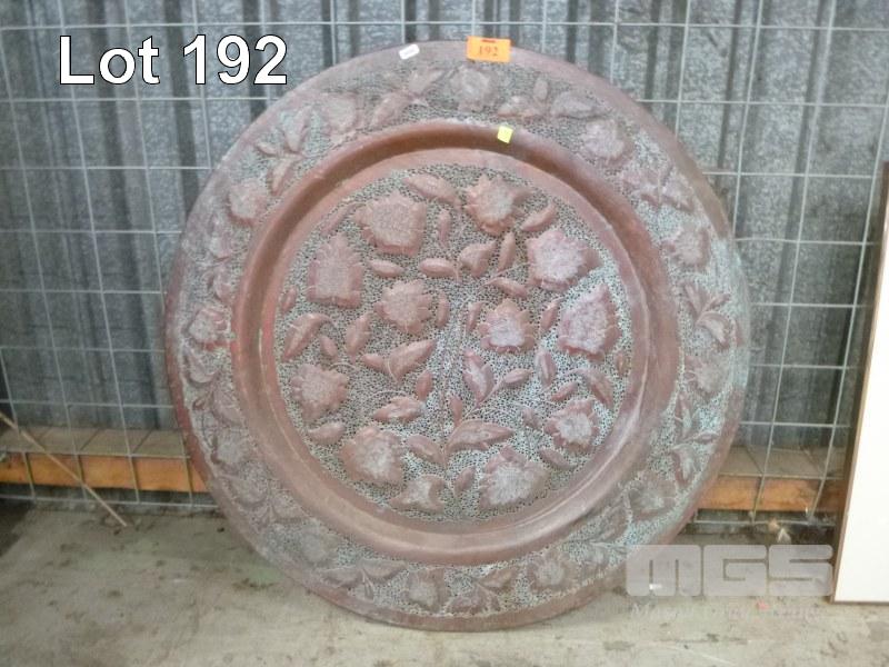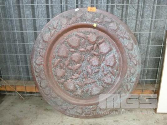 CIRCULAR COPPER WALL ART, FLORAL MOTIFS, 88cm DIAMETER