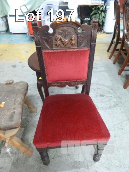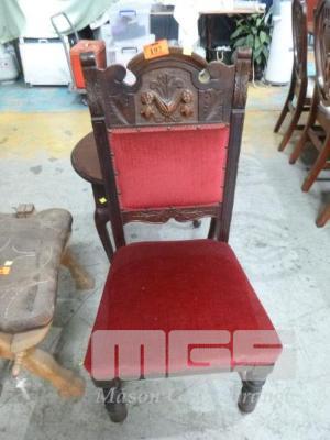 CARVED TIMBER DINING CHAIR, RED VELVET