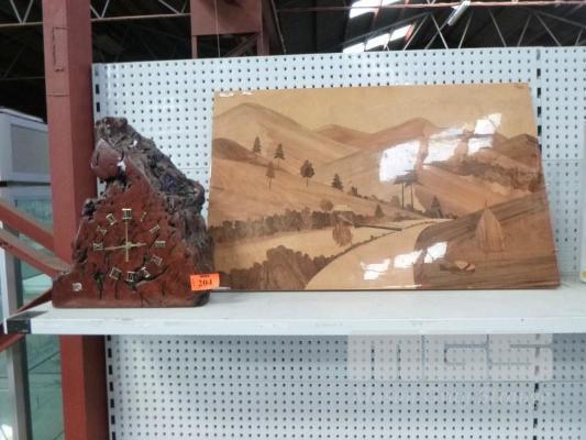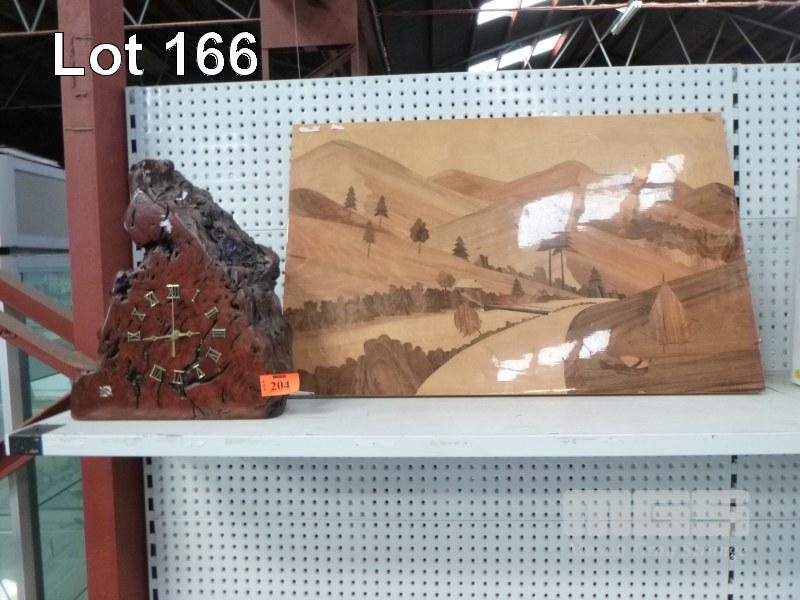 RED GUM MANTLE CLOCK & TIMBER WALL ART