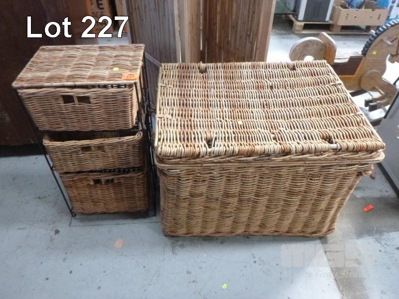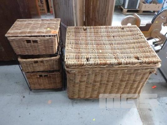LARGE WICKER BASKET & WICKER 3 DRAWER UNIT