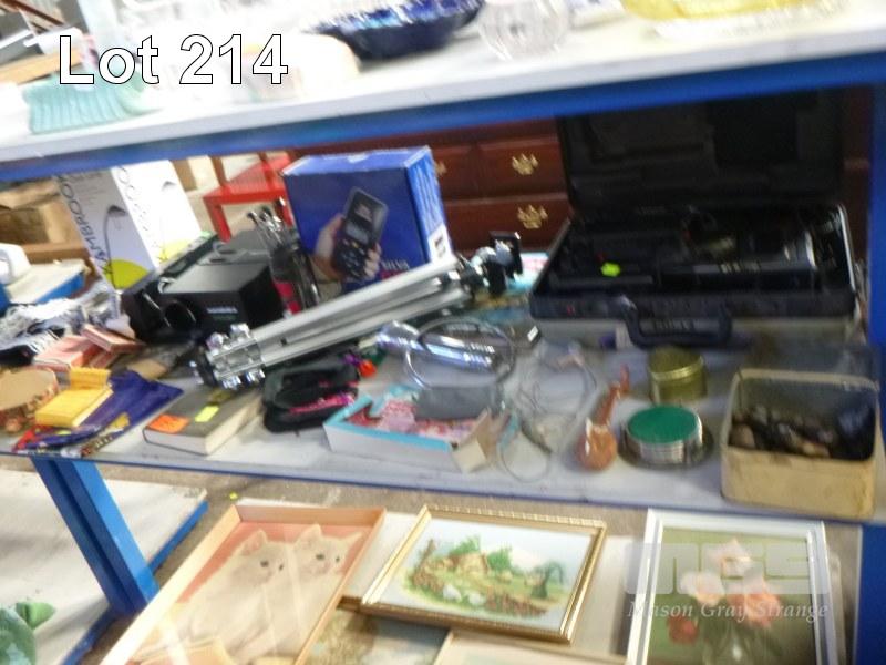 SONY VIDEO 8 CAMERA, HANIMEX SLIDE PROJECTOR, TRIPOD, CARDS, ETC