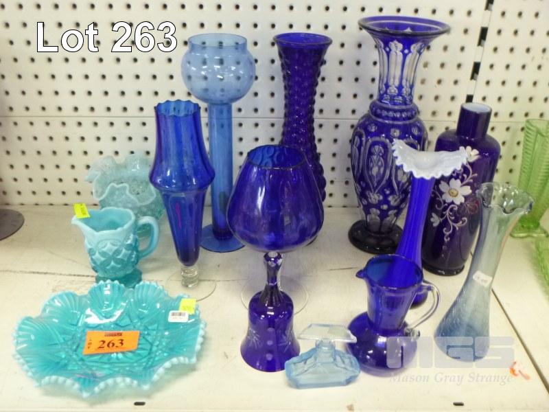 ASSORTED BRISTLE BLUE & BLUE ART GLASS