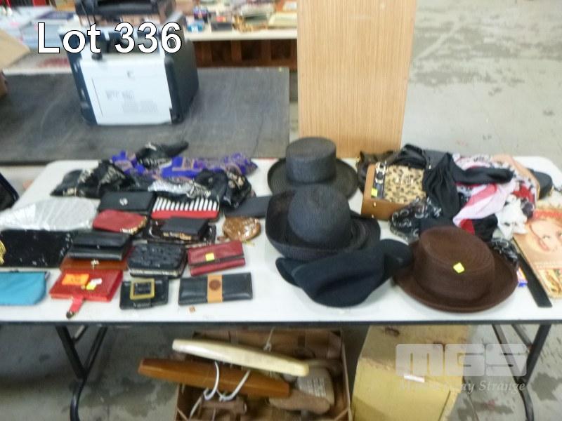 ASSORTED LADIES PURSES, HATS, SCARVES & HANDBAGS, 1 x TABLE