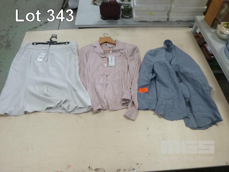3 X ITEMS OF ARMANI CLOTHING, WITH ORIGINAL SALES TAGS ATTACHED, INC; BEIGE SKIRT, GONNA TAGLIA, SIZE 50 (RRP $599) PINK ROSE JACKET, SIZE 48 (RRP $649) BLUE JACKET, GIACCA, TELA VISSUTA, SIZE 50 (RRP $1299)